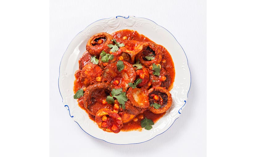 - מוסיפים מיץ לימון, עגבניות מרוסקות ורסק עגבניות ומביאים לרתיחה. מבשלים 5 דקות על להבה בינונית ומערבבים.